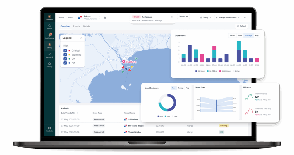 Pole Star Global’s Meridia Maritime Analytics brings vessel positions, ownership, port activity, and trade data together in one configurable platform. Access reliable maritime intelligence with real-time visibility, over 90% global coverage, and straightforward integration through REST APIs.