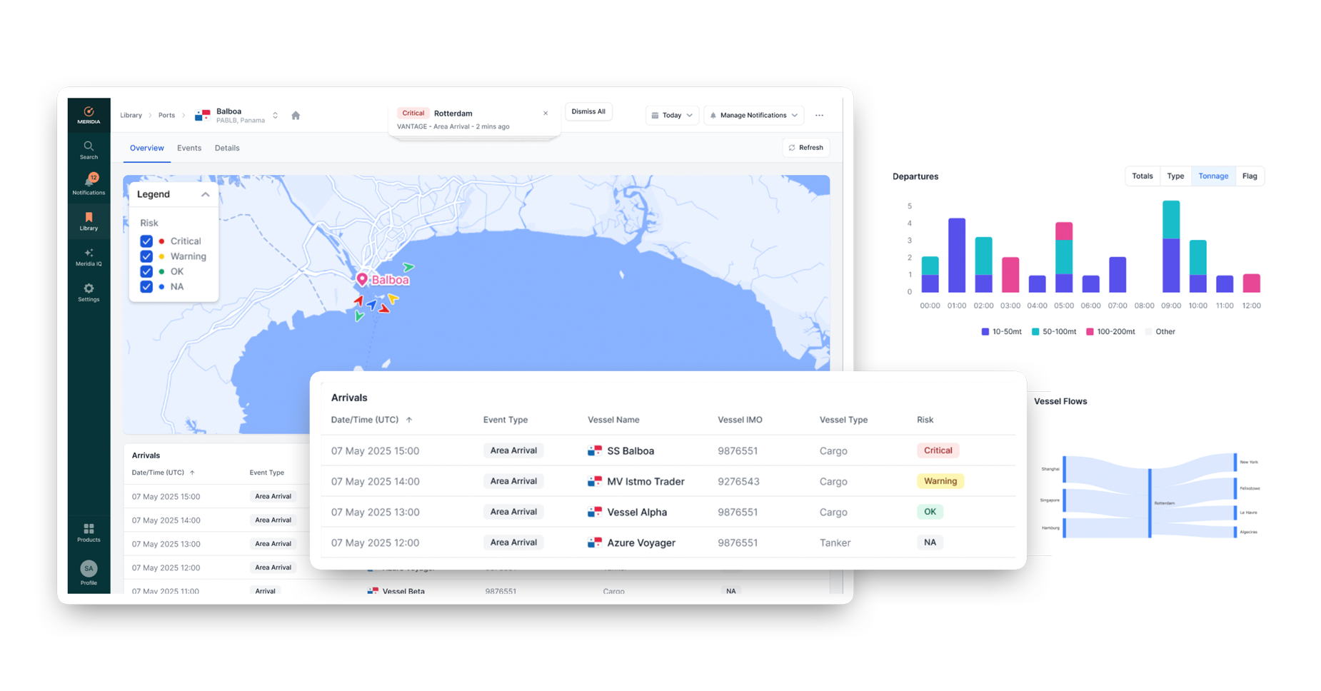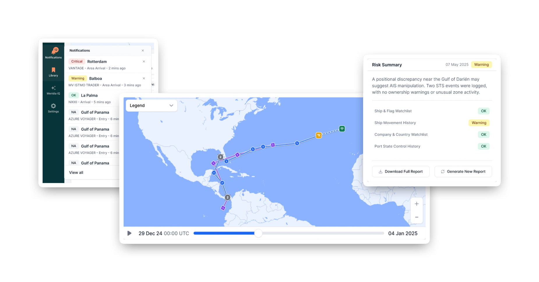 Pole Star Global’s Meridia Maritime Analytics brings vessel positions, ownership, port activity, and trade data together in one configurable platform. Access reliable maritime intelligence with real-time visibility, over 90% global coverage, and straightforward integration through REST APIs.
